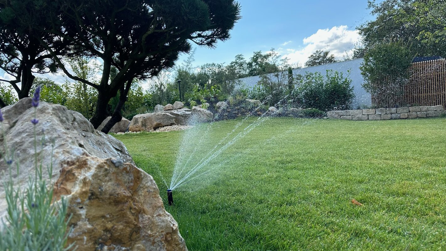 Die beste Technik wirkt im Verborgenen und ordnet sich der Gartenästhetik unter. Während wir für Rasenflächen auf die präzise Verteilung von Hunter-Regnern vertrauen, sorgen spezialisierte Tropfsysteme von Netafim oder Azud in den Pflanzbereichen für eine punktgenaue Versorgung direkt an der Wurzel. Auch für Solitärgehölze nutzen wir druckregulierte Einzelzuleitungen. Das Ergebnis ist eine gleichmäßige Bewässerung, die exakt auf die unterschiedlichen Bedürfnisse Ihrer Bepflanzung abgestimmt ist.