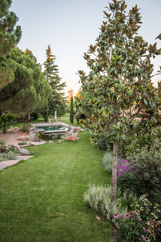 Unsere Zusammenarbeit endet nicht mit der Fertigstellung. Wir betreuen das Objekt durch eine jährliche Fachpflege sowie einen halbjährlichen Bewässerungsservice: von der Inbetriebnahme des Brunnens im Frühjahr bis zur Entleerung des Systems mittels Druckluft im Herbst. Auch notwendige Baumfällungen im unteren Teil des Gartens wurden durch uns durchgeführt. Das Vertrauen in unsere Arbeit bestätigte sich drei Jahre nach dem Hauptprojekt, als wir auch den Vorgarten passend zum Gesamtkonzept neu gestalten und ausführen durften.