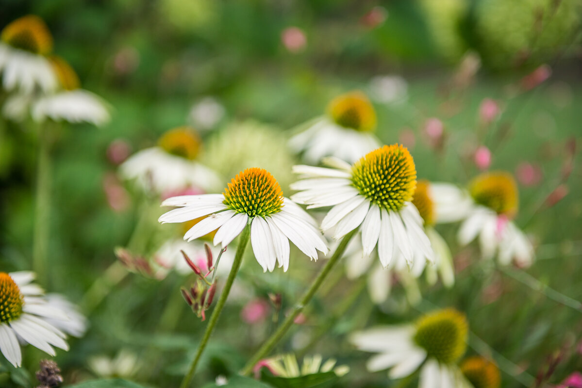Der Garten präsentiert sich als ruhige Einheit, die das Gefälle unaufgeregt überbrückt. Durch die Linienführung der Beete und die vertikale Begrünung gewinnt das Areal an Tiefe, ohne dabei an Offenheit zu verlieren.